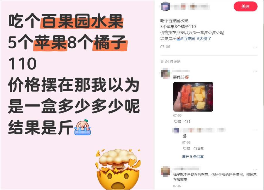 据浙江在线报道,社交媒体上,曾有不少网友吐槽。“太贵了,月薪2万吃不起。”“百果园随便买买,一百块钱就没了。”“到底谁在吃百果园?”还有网友称,百果园越来越贵,质量却越来越差。
