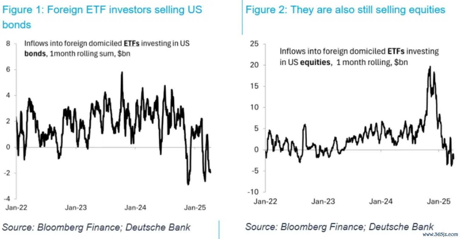报告称,ETF 数据中持续抛售现象尤为突出,投资者在股债市场均有抛售动作。在考察范围更广、包含更多行动较慢且来自更多非欧洲地区的基金时,投资者虽已停止买入美国股票,但尚未成为净卖家。而债券市场方面,则呈现出 “激烈抛售” 态势。